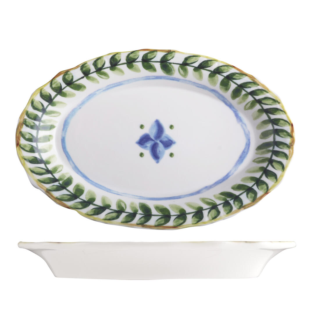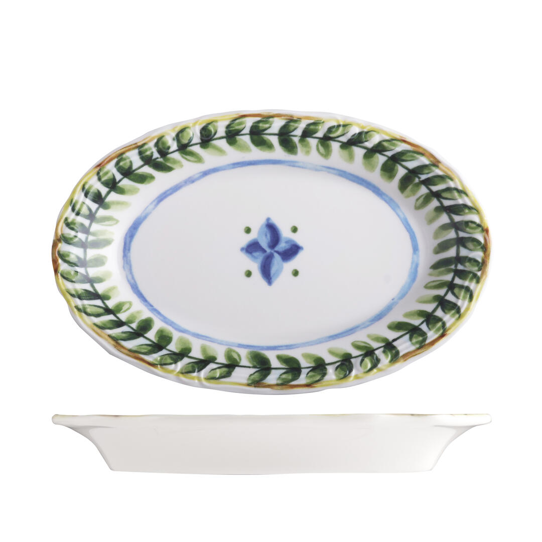 Bring the vibes of summer on the Amalfi coast to the dining room with the Capri range by ID Fine. Drawing on traditional handpainted ceramics, each piece is bordered with a bold leaf design and a rich palette of Mediterranean blues and greens, digitally applied for crisp detailing and subtle surface texture. The centre of select pieces is playfully embellished with a vibrant blue flower motif, whilst other pieces remain a fresh white porcelain canvas, allowing food to shine.