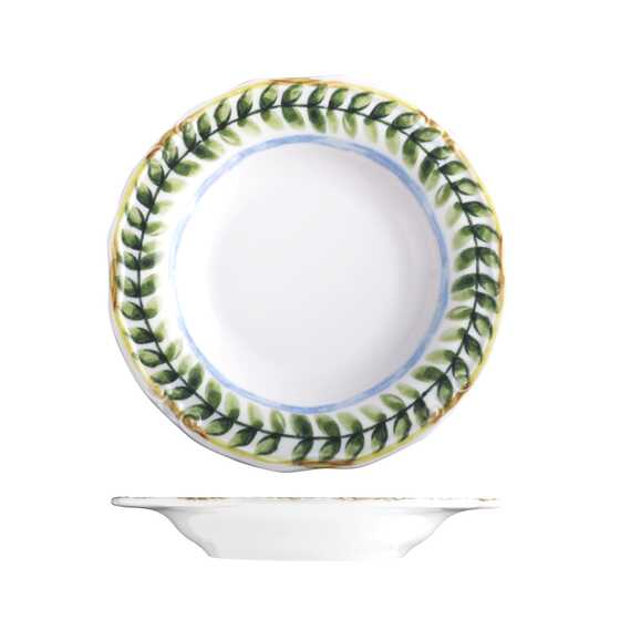 Bring the vibes of summer on the Amalfi coast to the dining room with the Capri range by ID Fine. Drawing on traditional handpainted ceramics, each piece is bordered with a bold leaf design and a rich palette of Mediterranean blues and greens, digitally applied for crisp detailing and subtle surface texture. The centre of select pieces is playfully embellished with a vibrant blue flower motif, whilst other pieces remain a fresh white porcelain canvas, allowing food to shine.