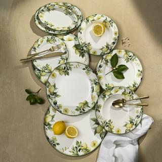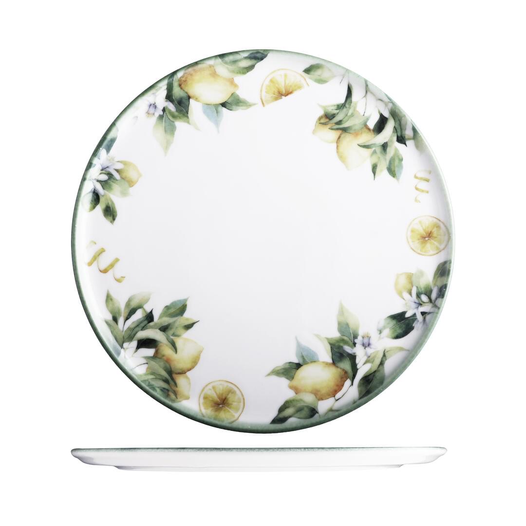 Transport your guests to the shores of southern Italy with the Sorrento range by ID Fine. Inspired by coastal citrus groves for a fully immersive presentation, each piece is framed by a delicate border of lemon trees, expertly applied using innovative digital printing for crisp detail and a subtly textured surface. The centre of each piece remains a crisp white porcelain canvas, drawing the eye to the centre of each piece and immersing diners into the heart of the mediterranean.