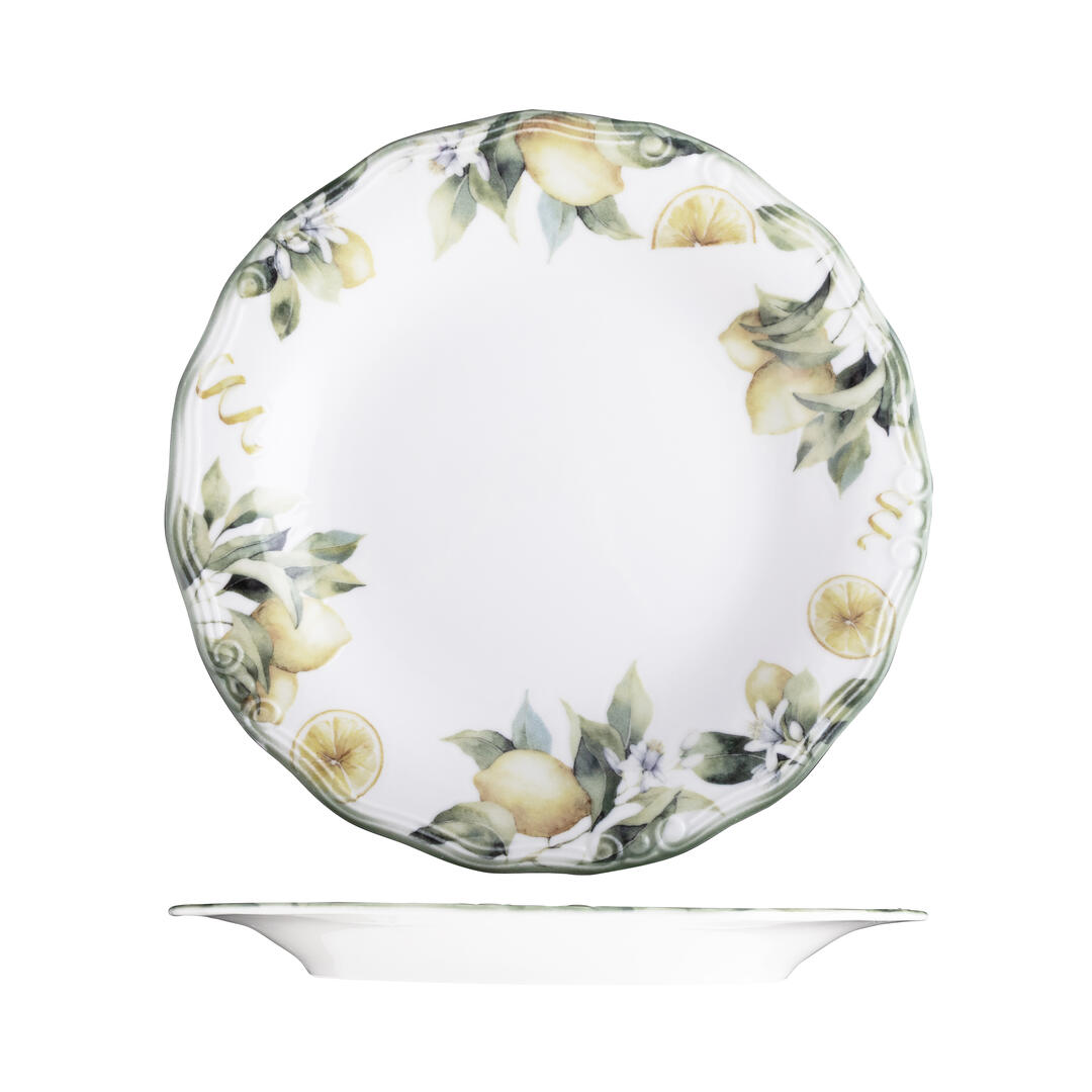 Transport your guests to the shores of southern Italy with the Sorrento range by ID Fine. Inspired by coastal citrus groves for a fully immersive presentation, each piece is framed by a delicate border of lemon trees, expertly applied using innovative digital printing for crisp detail and a subtly textured surface. The centre of each piece remains a crisp white porcelain canvas, drawing the eye to the centre of each piece and immersing diners into the heart of the mediterranean.