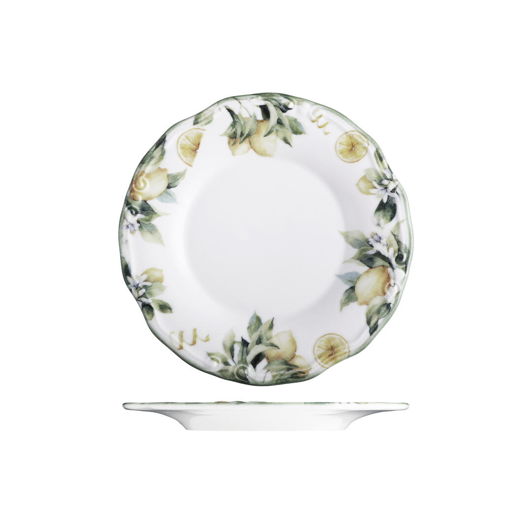 Transport your guests to the shores of southern Italy with the Sorrento range by ID Fine. Inspired by coastal citrus groves for a fully immersive presentation, each piece is framed by a delicate border of lemon trees, expertly applied using innovative digital printing for crisp detail and a subtly textured surface. The centre of each piece remains a crisp white porcelain canvas, drawing the eye to the centre of each piece and immersing diners into the heart of the mediterranean.