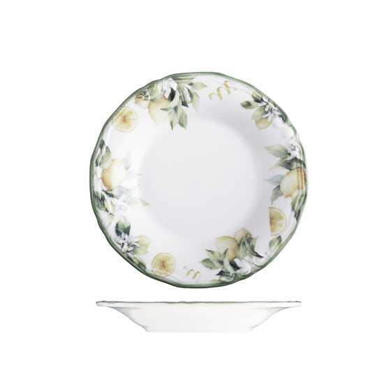 Transport your guests to the shores of southern Italy with the Sorrento range by ID Fine. Inspired by coastal citrus groves for a fully immersive presentation, each piece is framed by a delicate border of lemon trees, expertly applied using innovative digital printing for crisp detail and a subtly textured surface. The centre of each piece remains a crisp white porcelain canvas, drawing the eye to the centre of each piece and immersing diners into the heart of the mediterranean.