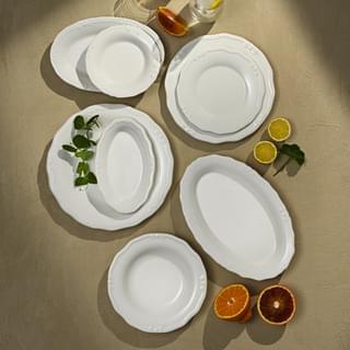 Elegant and understated, the Tiffany range by ID Fine blends classic European charm with the resilience of modern porcelain. Featuring soft curves, embossed edge detailing, and a creamy white finish, Tiffany brings quiet refinement to any table setting.