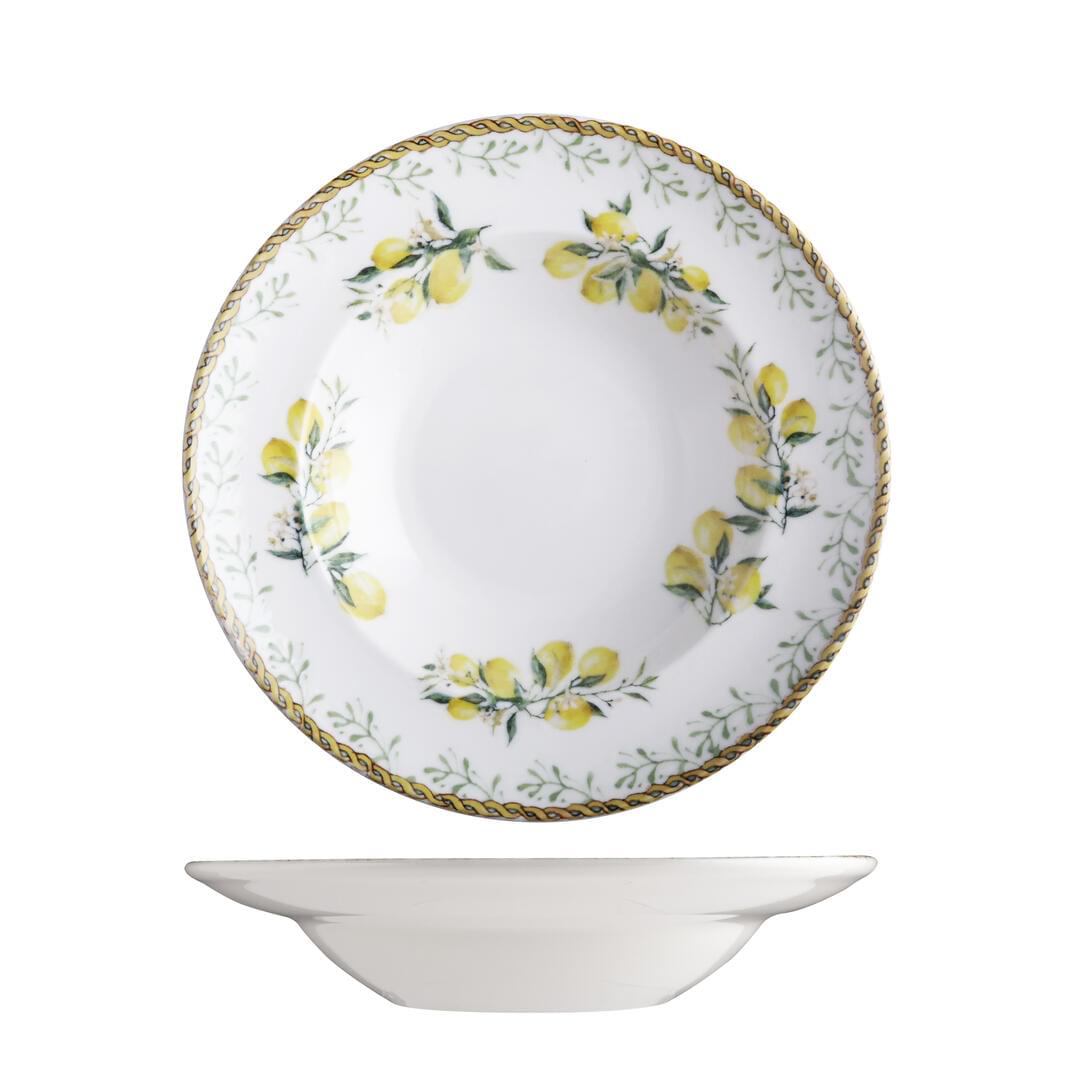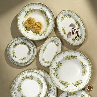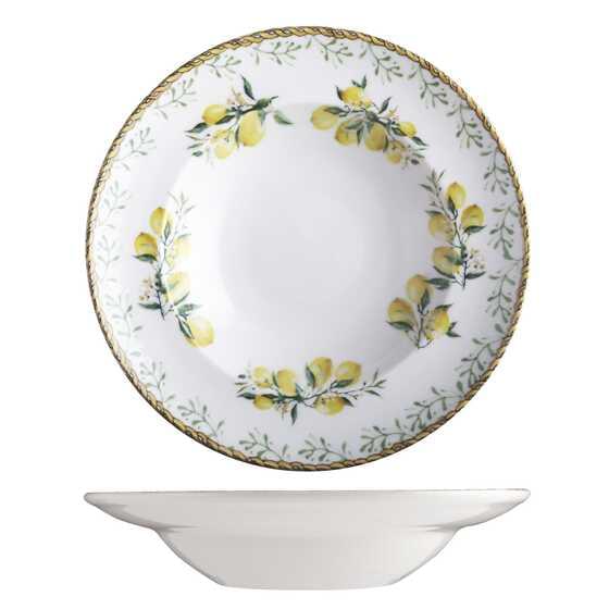 Capture the romance of northern Italy with the Verona range by ID Fine. A floral border of lemon blossoms and delicate foliage wraps around each piece, accented with soft botanical illustrations and applied using state-of-the-art digital printing to achieve layered depth and textural contrast. At the centre, a clean white porcelain base keeps presentation focused and refined — ideal for fresh, seasonal fare.