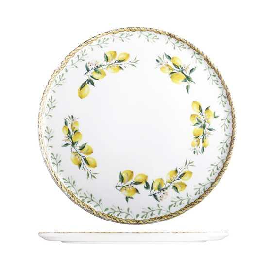 Capture the romance of northern Italy with the Verona range by ID Fine. A floral border of lemon blossoms and delicate foliage wraps around each piece, accented with soft botanical illustrations and applied using state-of-the-art digital printing to achieve layered depth and textural contrast. At the centre, a clean white porcelain base keeps presentation focused and refined — ideal for fresh, seasonal fare.