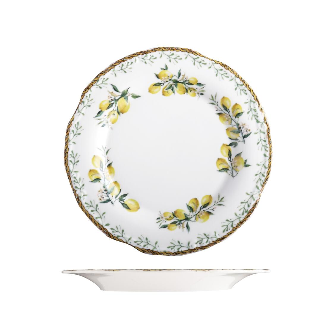 Capture the romance of northern Italy with the Verona range by ID Fine. A floral border of lemon blossoms and delicate foliage wraps around each piece, accented with soft botanical illustrations and applied using state-of-the-art digital printing to achieve layered depth and textural contrast. At the centre, a clean white porcelain base keeps presentation focused and refined — ideal for fresh, seasonal fare.