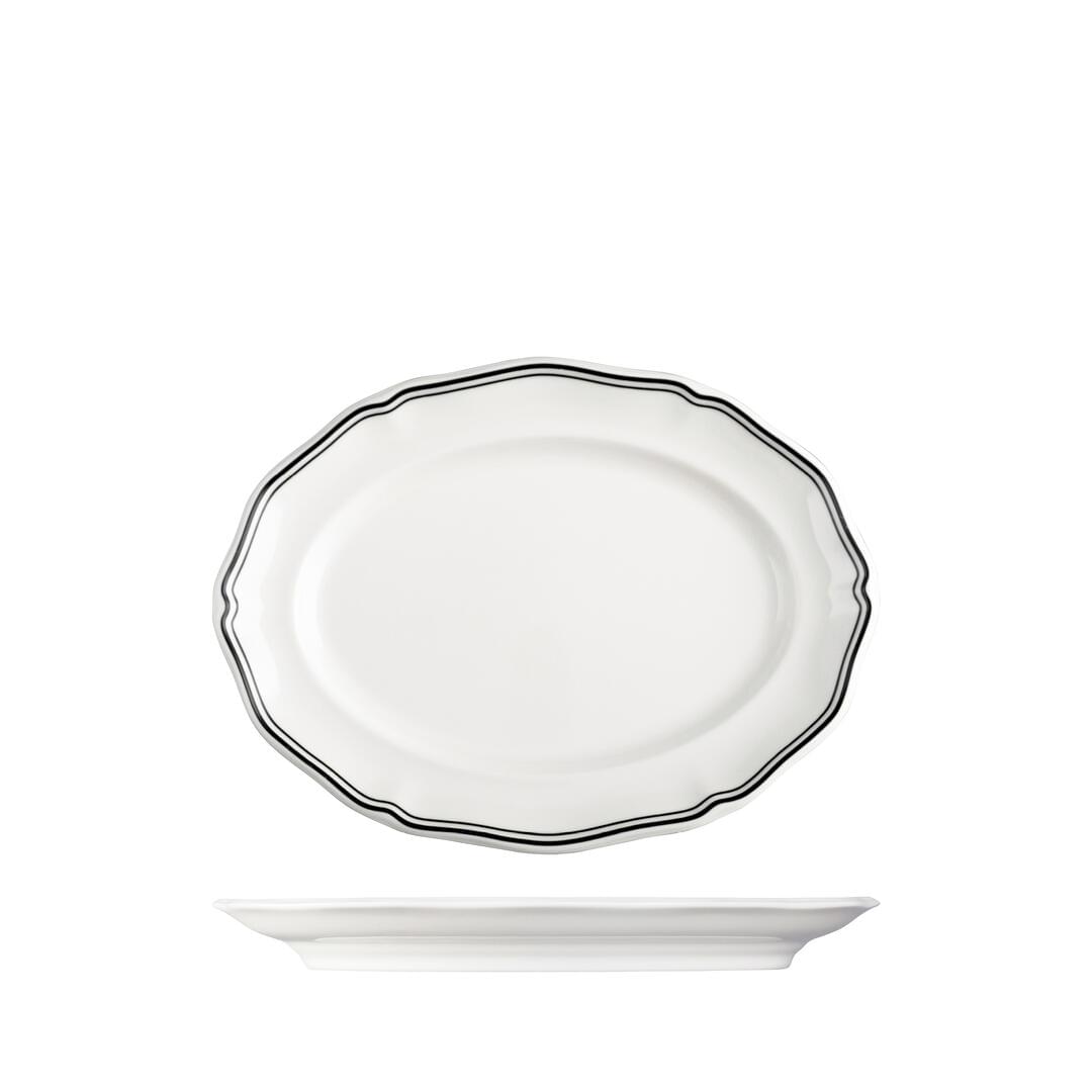 Astoria Ink Scalloped Oval Plate - Wide Rim - 94356-BK