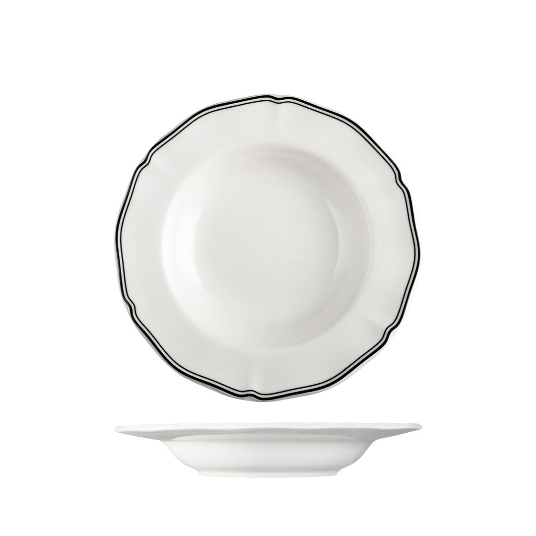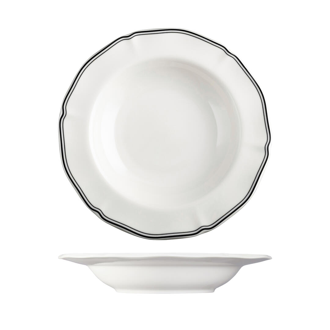 | 94359-BK | Soup/Pasta Scalloped Wide Rim Bowl | 48mm | 265mm | 530ml | Ink | Luzerne | New Bone | 5 Year Edge Chip Warranty, Microwave Safe, Microwave Safe, Oven Safe |