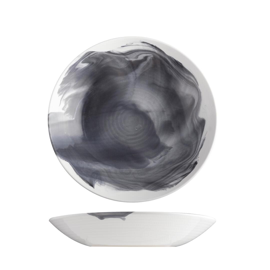 Available in White and Black Smoke, Aspen offers dramatic contrast to food presentations. Black Smoke is finished with a hand-applied reactive glaze that pools and drips along the rim, making every piece entirely unique.