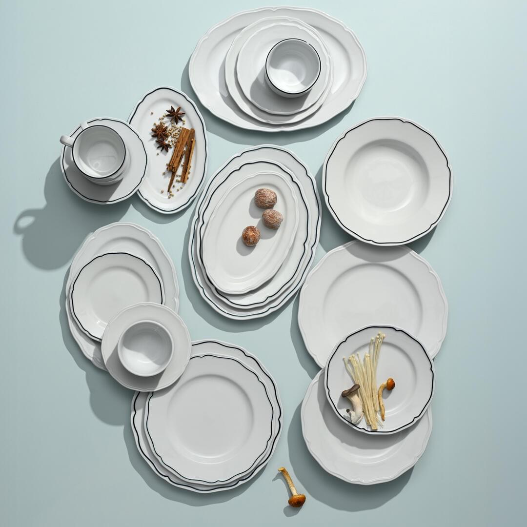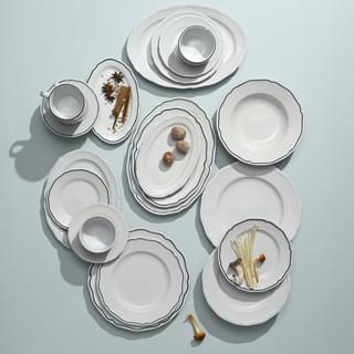 Charleston is available in two finishes: a classic white, and the contrasting Charleston Blue Band, featuring a timeless deep blue line along the edge.