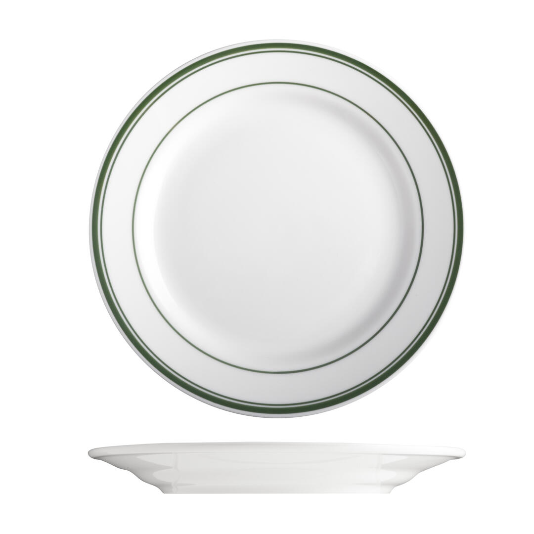 With its creamy white body and deep green banding, Green Bay is a vintage throwback with a modern approach. The double-line detail adds retro character, offering a sense of nostalgia to the dining experience. Green Bay is made from fully vitrified ceramic with enhanced chip resistance.