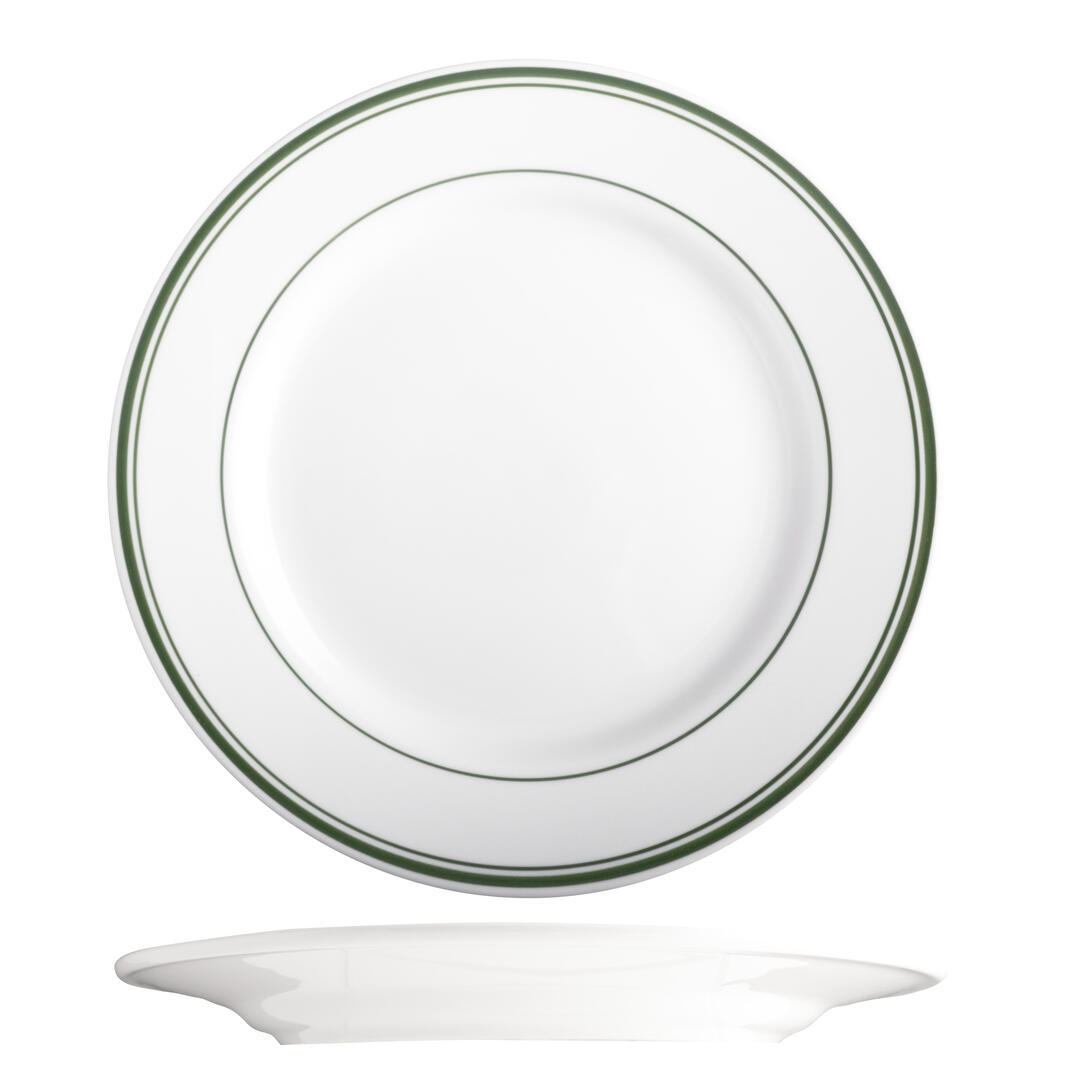 With its creamy white body and deep green banding, Green Bay is a vintage throwback with a modern approach. The double-line detail adds retro character, offering a sense of nostalgia to the dining experience. Green Bay is made from fully vitrified ceramic with enhanced chip resistance.