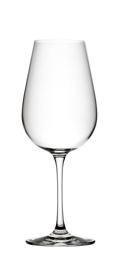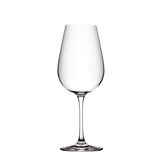 Slender drawn stems add finesse to this collection of tall, elegant glassware.
