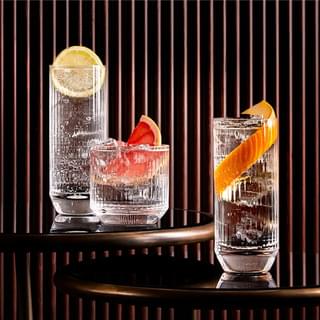 A celebration of simplicity and minimalism, the Big Top collection by Nude Glass is made from clear lead-free crystal etched with a raised linear pattern.